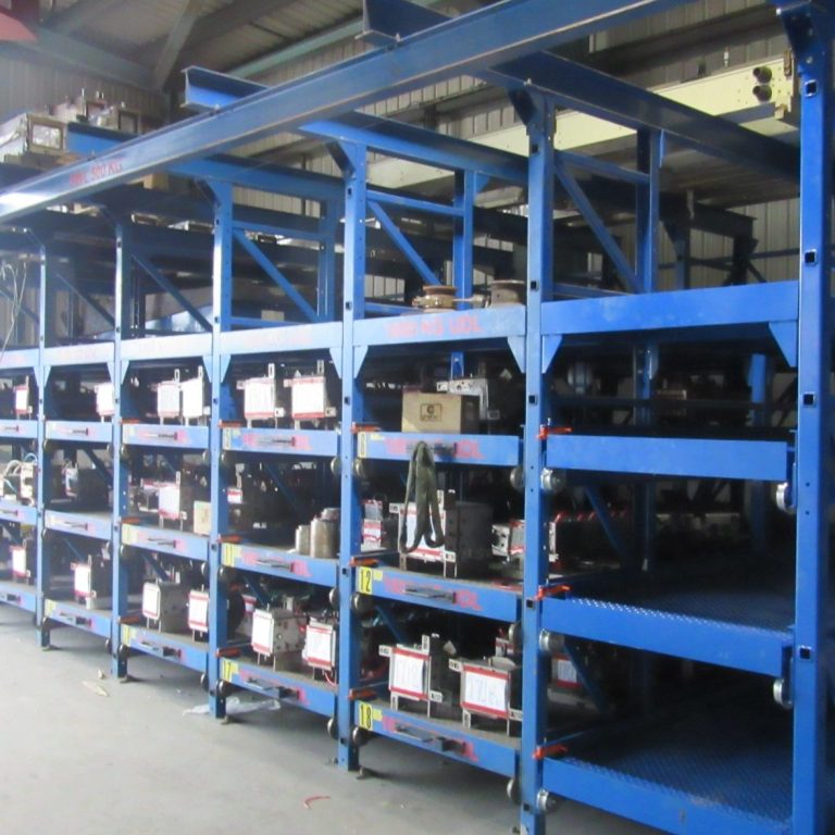 Unsere individuell konfigurierbaren Regalsysteme für Spritzgusswerkzeuge vereinen robuste Konstruktion mit effizienter Raumnutzung und sind die ideale Lösung für den sicheren Umgang mit schweren Werkzeugen in industriellen Lagerbereichen.